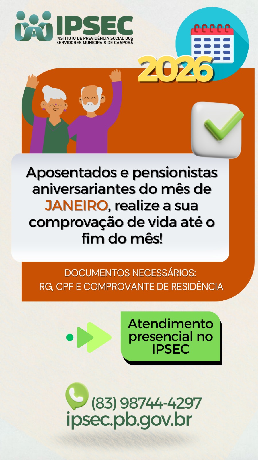 Comunicado Importante – Prova de Vida Mês de Janeiro